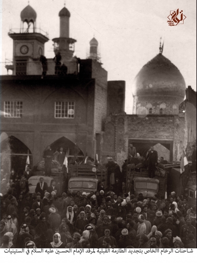 شاحنات الرخام االخاص بتجديد الطارمة القبلية لمرقد الإمام الحسين عليه السلام في الستينيات