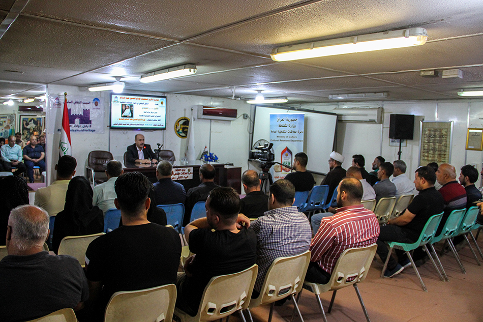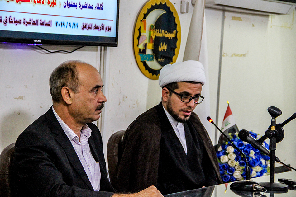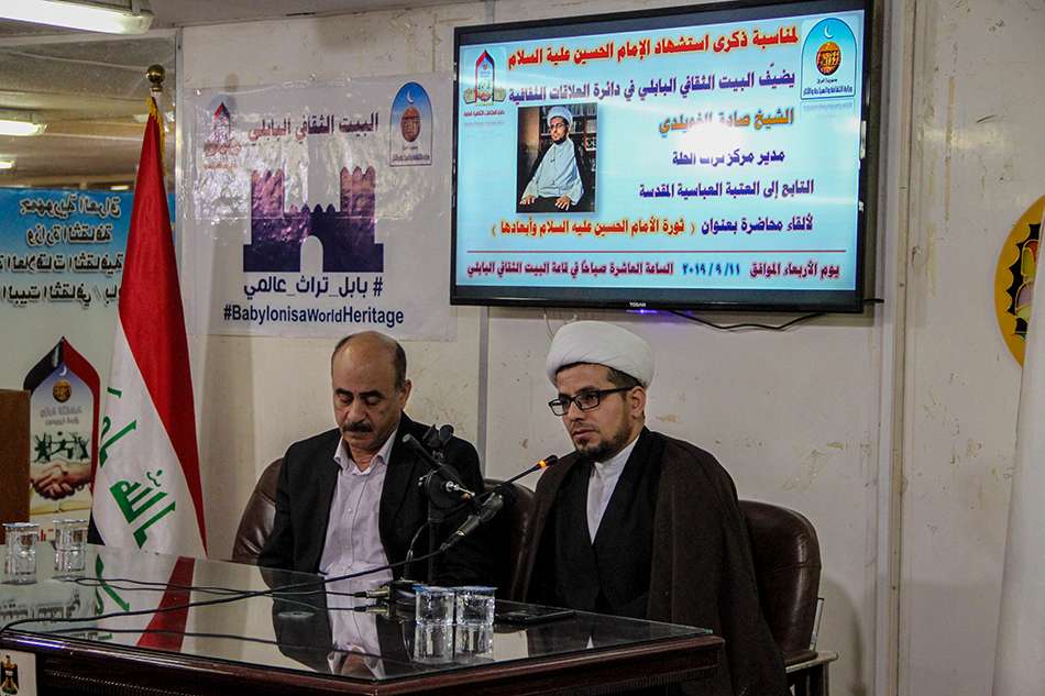 في أُطر العمل الولائيّ الخاص بأهل البيت (عليهم السلام) سعى مركز تراث الحِلَّة على العمل أفقيًّا وعموديًّا - بكوادره العاملة - خدمةً للتراث الإسلاميّ، ولما لهذا الشهر من فضائل ومواقف على الصُعد كافة؛ قدَّم الشيخ صادق الخويلديّ مدير مركز تراث الحِلَّة المحاضرة العاشورائيَّة في ضيافة البيت الثقافيّ البابليّ وكانت المحاضرة بعنوان[ ثورة الإمام الحسين عليه السلام وأبعادها ] أوضح عبرها المدى الزمكانيّ التي امتدت إليه ثورته لتكون منبعًا ومحرِّكًا لكلِّ الثقافات والأفكار التحرريَّة في العالم؛ للوقوف بالضد من كلِّ القيم السلبيَّة والرجعيَّة التي تصادر حرية الإنسان والجماعات، كما بيّن الشيخ الخويلديّ الأبعاد الإنسانيَّة والفكريَّة والإعلاميَّة التي نتجت من ثورته المباركة.