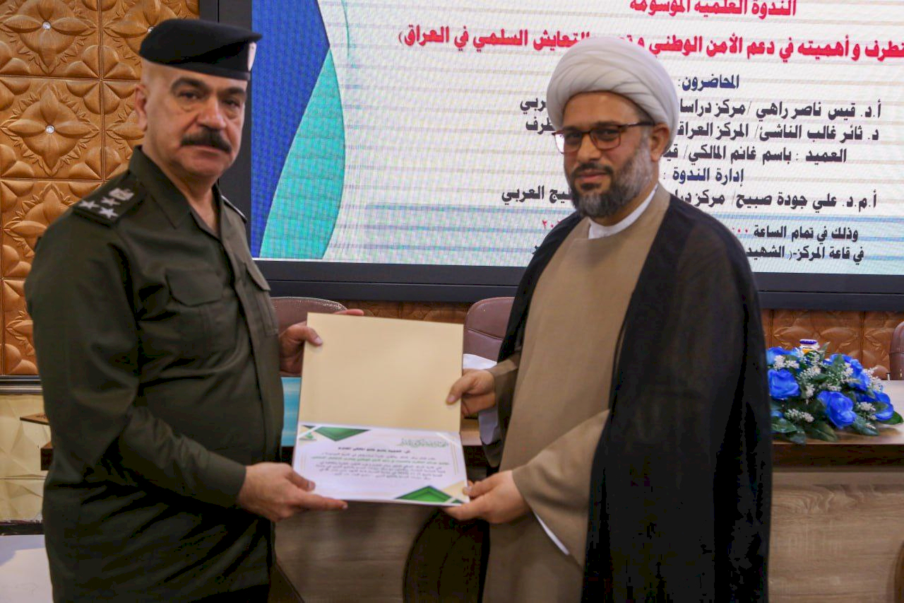 بدعوةٍ كريمةٍ من المركزِ العراقيِّ لتوثيقِ جرائمِ التَّطرُّفِ، التابعِ إلى قسم الشؤون الفكريَّة والثقافيَّة في العتبة العبَّاسيَّة المقدَّسة، وفي قاعة الشَّهيد حسن نصر الله ، في مركزِ دراساتِ الخليجِ العربيِّ في جامعةِ البصرةِ، مجمعِ كلِّيات بابِ الزُّبير . حَضرَ وَفدُ مركزِ تراثِ البَصرةِ التابعِ إلى قسمِ شؤونِ المعارفِ الإسلاميَّة والإنسانيَّة في العتبةِ العبَّاسيَّةِ المقدَّسةِ، وقائعَ النَّدوةِ التي أقامها المركزُ العراقِيُّ لتوثيقِ جرائمَ التطرفِ بالتَّعاونِ مع مركزِ دراساتِ البصرةِ الخليجِ العربي بجامعة البصرة يوم أمس الأحد 2/11/2025م، والموسومة بـ (توثيقِ جَرائمِ التَّطرُّفِ واهميَّتُهُ في دعمِ الإمنِ الوطنيِّ وتعزيزِ التَّعايُشِ السِّلميِّ بالعراقِ) . وشهدت النَّدوةُ التي أدارها الدكتور علي جودة صبيح من مركز دراسات البصرة والخليج العربي وتناولت ثلاث أوراق بحثية قدَّمها كلٌّ من : الدُّكتور ثائر غالب الناشئ ، والأستاذ الدكتور قيس ناصر راهي من المركزِ العراقيِّ لتوثيق جرائِم التَّطرُّفِ ، والعميد باسم غانم المالكي من قيادة شرطة البصرة ، حضوراً لافتاً للأنظار، لاسيَّما وقد أثريت بتداخل الحضور الكريم بتعقيبات ورؤى عدة ، ووجهات نظر استقبلتها إدارة الندوة، وأكدت على ضرورة تعزيز الوعي الجماهيري بجرائم التطرف التي تنتجها القوى المعادية، والعمل على الحدِّ من انتشارها من خلال تفعيل عوامل الوعي والنضج الفكري، وتعزيز أسس المواطنة الحقيقية بما يخدم التطلعات والأهداف التي تخدم الوطن، كما وأنَّ التصدي لمثل هذه الممارسات المتطرِّفة يكمن بالثقافة والإحاطة بالدَّوافع والجذور لهذه الظاهرة ، فضلاً عن إشاعة الحوار وتقبل رأي الآخر، وتعزيز ثقافة الاختلاف . وأكَّد الحضور على أنَّ التوثيق لهذه الممارسات يُعدُّ ضرورةً وطنيةً تُسهِمُ بالحدِّ من انتشارِ جرائمِ التطرُّفِ، وتجفيف منابعها ، والإجهاز على أساسياتها . وجاءت مداخلة سماحة الشيخ مدرك الحسون مدير مركز تراث البصرة ، لتشيد بدور المركز العراقي لتوثيق جرائم التطرف، مؤكداً على أنَّ التوثيق مسؤولية وطنية، ومهمَّة ملحَّة ، تؤكِّد على عملية الشعور بالانتماء الحقيقي للوطن، وتعكِس ضرورتها وواجباتها، وبرامجها الهادفة باتجاه محاربة برامج التطرف بأشكالها كافة، اذا ما تعززت بالجهود المتكاملة التي تؤدي إلى بناء الوطن، فهي مسؤولية الجميع.