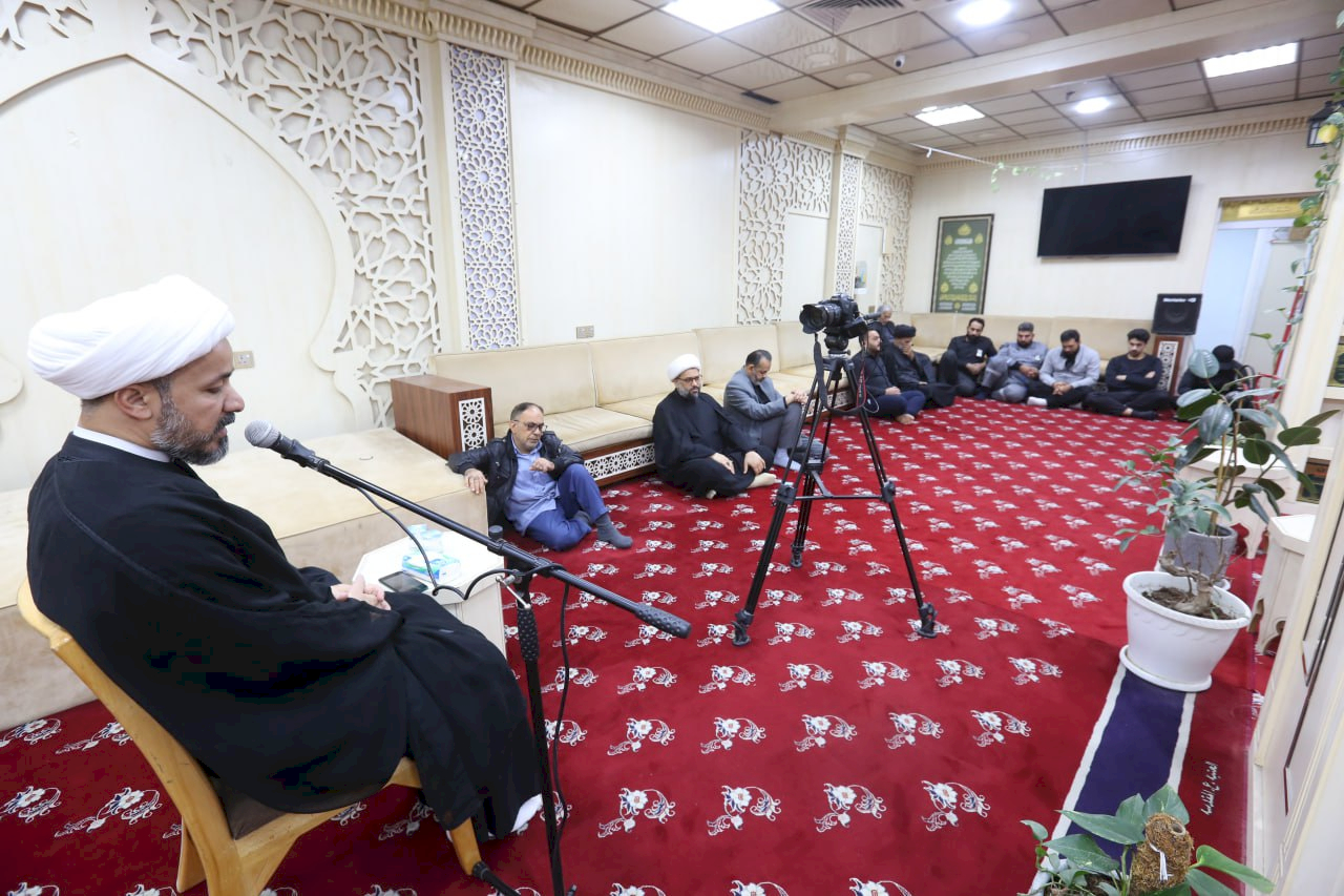 لمناسبةِ الذِّكرى الأليمة لاستشهادِ عاشرِ الأئمةِ الأطهارِ من آلِ بيتِ الرِّسالةِ المحمَّديَّة (عليهم السَّلام) ، الإمام عليٍّ الهاديّ (عليه السلام) ، الذي يوافق اليوم الثالث من شهر رجب عام (254هـ) ، وبحضورِ سماحة الشَّيخ مدرك شوكان الحسون ، والأخوة الأكارم في مجمَّع الإمام الحجة (عجل الله فرجه ) ، والضيوف الكرام ، ووحدات المركز . أقامَ مركزُ تراثِ البصرةِ ، التابعُ لقسمِ شؤونِ المعارفِ الإسلاميَّة والإنسانيَّة في العتبةِ العبَّاسيَّة المقدَّسة ، مجلساً حسينيَّاً ، اعتلى منبره سماحةُ الشَّيخ ( طالب المنصوري ) ، متطرِّقاً إلى حياةِ الإمامِ الشَّريفة وما تعرَّض إليه من ظلمٍ في عهدِ السُّلطة العبَّاسيَّة ) . أستهل المجلس بالأبياتِ المأثورةِ : لا تأمنَ الدَّهرَ إنَّ الدَّهرَ ذو غِيرٍ وذو لسانينِ في الدُّنيا ووجهينِ أخنى على عترةِ الهاديّ فشتَّتهم فما تَرى جامِعاً منهم بشَخصينِ بعضٌ بطيبةَ مدفونٌ وبعضُهم بكربلاء وبعضٌ بالغرييَّن شارحاً حياة الإمام ، ومواجهته لقوى الجورِ والباطلِ للسّلطات العبَّاسيَّة التي احكمت حلقاتها الظالمة عليه والمقربين منه ، مبيِّنا موقفه الواضح من هذهِ السُّلطة الغاشِمة التي حاولت أن تثنيه عن ديمومة تلك الرِّسالة والأمانة ، مؤشِّراً على أهمِّ المراحل والمواجهات التي أثبتت موقفه الشريف أمام إغراءات وممارسات الخليفة العباسيّ وأزلامه ، لينتهي به الأمر إلى الشَّهادة التي لا بد منها ، اسوة بمن سبقه من آبائه الأباة الميامين ( عليهم السَّلام) ،ليصل ربطه الموضوعي بجدِّه الإمام الحسين (عليه السلام) ، ومحنته الكبيرة في سبيل إعلاء راية الدِّين والمذهب .