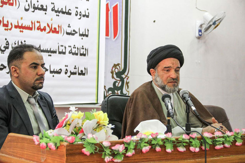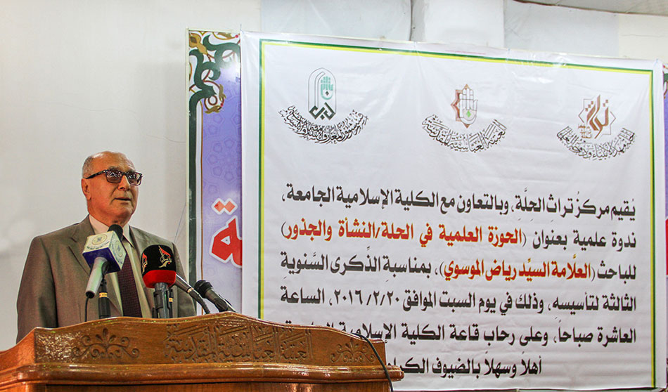 بمناسبة الذكرى الثالثة لتأسيسه أقام مركز تراث الحلة ندوته الفكرية (الحوزة العلمية في الحلة النشأة والجذور) ألقاها السيد رياض الموسوي، ومعرضاً للكتاب الحلّي، ضم جملة من إصدارات المركز، كما أقام المركز معرضاً للقى التراثية وصوراً للشخصيات العلمية والفكرية الحلية، والمشاهد المقدسة والمعالم التراثية، في رحاب الكلية الإسلامية الجامعة، وبحضور نخبة من طلبة العلم الأفاضل والأساتذة الأكاديميين والمثقفين. جانب من الحضور في الندوة كلمة الجامعة الإسلامية ألقاها الدكتور علي ناصر غالب أستهل الحفل الكريم بتلاوة آي من الذكر الحكيم، والوقوف حداداً لقراءة سورة الفاتحة المباركة على أرواح شهدائنا الأبطال، ثم تلتها كلمة الشيخ صادق الخويلدي مدير المركز وكالة الذي أوضح أن المركز قد أخذ على عاتقه إحياء التراث الحلي بكل مدوناته الفقهية والعلمية والفكرية والأدبية، وما تضمه مدينة الحلة من المعالم والمشاهد المقدسة، وقد أخرج إلى النور جملة من الإصدارات التي تنهل من ذلك التراث العلمي الوضّاء، ومازال جاداً ومتواصلاً في نهضة هذا التراث بهمة المخلصين والمعنيين بهذا الإرث الشامخ، وجاء في كلمة الشيخ الخويلدي: أتوجه بالشكر إلى الله سبحانه وتعالى أولاً وإلى العتبة العباسية المقدسة لاهتمامها بالعلم والعلماء ورعايتها هذا التراث الغني، وإلى سماحة السيد أحمد الصافي (حفظه الله)، وكل من دعم ورفد هذا المركز الذين لولاهم لما وضعت اللبنات الأساسية للمركز ولما شقّ طريقه وعرف دربه سيما طلبة العلوم الدينية الأجلاء والمعتمدين الأفاضل، والأساتذة الأكاديميين والمثقفين، وفاء منهم لهذه المدينة المعطاء التي لها الحق على الجميع وليس الحليين فحسب. السيد رياض الموسوي يلقي محاضرته الحوزة العلمية في الحلة النشأة والجذور وفي كلمة للجامعة الإسلامية ألقاها الدكتور علي ناصر غالب بارك لمركز تراث الحلة نشأته، وخطواته العلمية الرصينة من أجل نهضة وانبعاث التراث الحلي قال: إنّ جهود المركز في مجال البحث العلمي أضحت جلية، وهي تتعزز يوماً بعد آخر، ومنها اعتماد مجلة المركز المحكمة لتكون مورداً علمياً رصيناً جديداً يسهم فيه الباحثون في مختلف المجالات التي تخص هذه المدينة الثرية بتاريخها المتألقة بحاضرها . توّج المركز حفله بمحاضرة علمية عن نشأة وجذور الحوزة العلمية في الحلة ألقاها سماحة السيد رياض الموسوي، ذكر فيها بواكير النهضة العلمية والفكرية في الحلة بعد عصر الشيخ المفيد والصدوق وعلمي الهدى الشريف الرضي والمرتضى، والظروف التي هيأت لانتقال الحوزة العلمية إليها، ورحلة علماء وطلبة العلم إليها، ومما جاء فيها: إن هذه الأرض المباركة هي مهد الأنبياء، وقد شرّفها الله سبحانه بذراري النبي الأكرم (صلى الله عليه وآله) ومراقد العلماء الأعلام والمقامات المشرفة فيها. السيد أياد الشريفي وقد ترعرعت الحركة العلمية على هذه الأرض بجهود ومداد علماء سجلوا أسمى صور الجد والاجتهاد حتى كانوا رواد الحوزات العلمية في مختلف المدن الإسلامية، وفي جميع الجوانب العلمية والفكرية، وقد شهدت فحول الطائفة أمثال إبن ادريس الحلي، والشيخ ورام، وابن فهد الحلي، وبروز أسر علمية مثل آل طاووس وآل المطهر، وآل معية، وآل نما، وبني سعيد وغيرهم من البيوتات العلمية التي مازالت آثارهم العلمية والفقهية تدرس وتناقش في الحوزات العلمية . شهد الحفل اقبالاً موفقا من الطلبة الأفاضل والنخب المثقفة في ندوته ومعارضه، وفي لقاء لـ(رد الشمس) مع فضيلة السيد أياد الشريفي قال: نحن اليوم مدعوون لمزج المفاهيم الأكاديمية بالفهم الحوزوي والعكس صحيح، من أجل أن نواكب العصر بروحية ومفاهيم متجددة، وقد استطاع مركز تراث الحلة أن يخوض غمار هذه التجربة بثبات ونجاح . الأستاذ الدكتور فراس سليم حياوي ومن جانبه أكد الأستاذ الدكتور فراس سليم حياوي، مدير مركز بابل للدراسات الحضارية والتاريخية : إنّ مركز تراث الحلة كان السبّاق في إحياء ونشر التراث الحلي بعد أن غيّب سنين