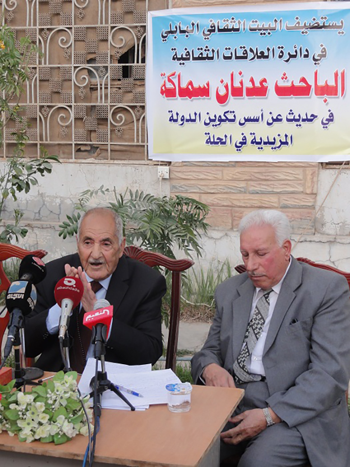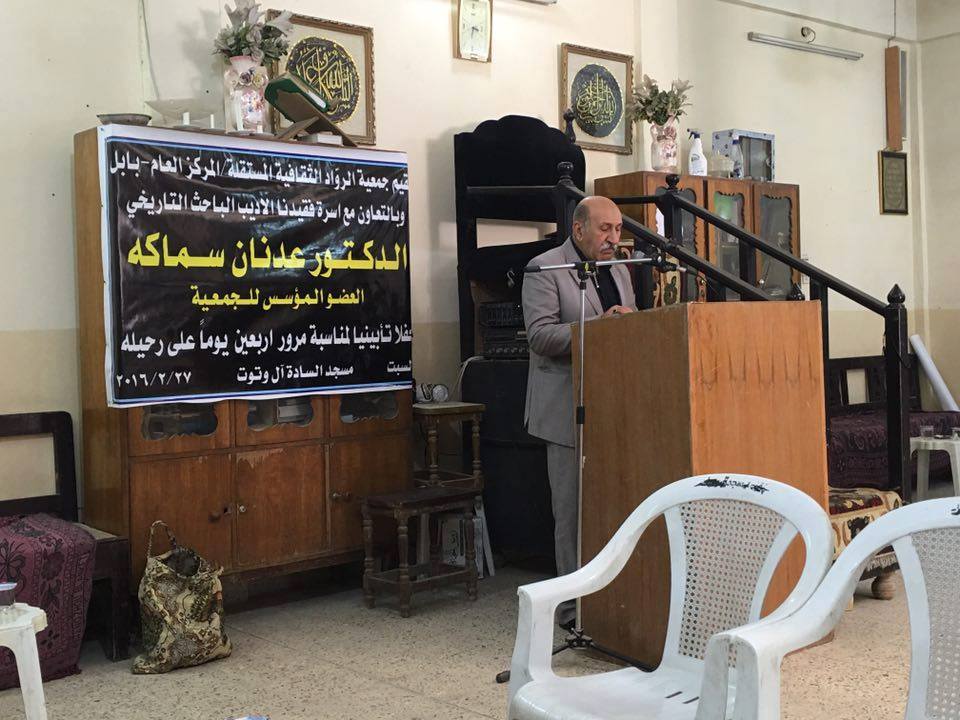 تقترن ثقافةُ كلِّ امرئ بأصولها، تلك الأصول التي تبنى عليها شخصية الفرد، فإن كانت أصولاً هشّة وضعيفة، أنتجتْ بناءً خاوياً وهزيلاً، لا يَقوى على مواجهة الانحراف ومُقاومة العابر، أمّا إذا كانت أصولاً قويّة وراسخة تتغذّى على منابع الفكر الصحيح، فإنها تتهجَّى طريقها على مشكاة الإيمان وقوّة الإرادة. ولعلَّ الباحثَ التراثيّ والمؤرِّخ عدنان سماكة واحدٌ من تُراثيّي مدينة الحلّة، ومُثقّفيها، فهو ينتمي منذ نشأته الأولى إلى ثقافة هذه المدينة وتاريخها الزاخر بالأسماء المبدعة في مختلف الثقافات. إنَّه اسمٌ عاش في وجداننا، وتردّد كثيراً على ألسنتنا، أديب ومؤرِّخ تراثيّ فاضل، اختطَّ طريقَه منذ الطفولة عبر مؤسّسةٍ دينيةٍ استقامت لها أبجديات الزهد والحِلم والتقوى. والرَّاحل واحدٌ من هذه الرموز الثقافيّة والأدبيّة والتراثيّة الحلِّية، ترجع أصولُه إلى آل سماكة، من قبيلة ربيعة ـ فخذ الأمارة - وهي العائلة التي عُرفت منذ أربعينيات القرن الماضي بممثليّة المرجعيّة الدينيّة في النجف الأشرف؛ إذ كان الشيخان محمّد سماكة وعليّ سماكة مُمثِّلَينِ كَبيرينِ لهذه المرجعيّة في منطقة الفرات الأوسط. وأتذكُّرُ -وأنا طفلٌ صغيرٌ- أنَّ هلال العيد الذي يبشِّرون بقدومه في المناسبات الدينيّة لشهري رمضان المبارك وذي الحجّة لا يقرُّ الاعتراف بحلوله إنْ لم يصدر عن أحد الشيخين رحمهما الله؛ ذلك لأنّ هذه العائلة تتمتع بقدسية خاصَّة ورمزيّة مشهودة في مجال الفقه والوعظ والإرشاد . وُلِدَ عدنان سماكة في مدينة الحلَّة، محلّة الورديّة عام 1934م، لأبٍ كان شيخاً يعمل في تعليم الصبيان القراءة والكتابة، ولمَّا بَلَغَ السادسة من العُمر دَخَلَ مدرسة الفيحاء الابتدائية عام 1941م، وتدرَّج في الحصول على الدراسة المتوسّطة حيث انتظم في الدخول إلى دار المعلِّمين الابتدائية في بغداد، وتعرَّض إلى الفصل من الدار في سنته الأُولى، لاتهامه بالمشاركة في انتفاضة عام 1952م، ثمّ شُمِلَ بالعفو العام لِيُعاود الدراسة مرَّة ثانية، وتخرَّج مُعلِّماً للغة الانكليزيّة، وعُيِّن مُعلِّماً في مدارس الحلّة، غير أنَّ طموحه لم يتوقّف، إذ ما لبث أن عاد مرّة أخرى إلى مقاعد الدراسة الجامعيّة في الجامعة المستنصريّة سنة 1963م، ليكمل فيها دراسته الجامعيّة، ويتخرَّج فيها مدرِّساً للغة العربيّة. مارس تدريس اللغة العربيّة في مدارس مركز مدينة الحلَّة المختلفة سنة 1968م، وتنقَّل في العديد منها، كما عمل -إضافة إلى وظيفته - أميناً لمكتباتها؛ لحرصه الكبير على تطوير هذه المكتبات، ومساعدة الطلّاب في الدراسة وتحفيزهم على الكتابة. كما تميَّز بحبِّه للعلم وشغفه بالصحافة والمساهمة في بعض الإذاعات التي كان يُلقي فيها بعض محاضراته وقراءاته للتاريخ والتراث، بصوت ونبرة واثقة في نطق الكلمات، وامتازت بحسن الأداء وجَهوَريّة الصوت. دخل معهد التاريخ في بغداد سنة 2003م، وأكمل فيه دراسته العليا بالحصول على شهادة الماجستير في موضوعة (قبيلة ربيعة ودورها السياسيّ والثقافيّ والاجتماعيّ في العراق إلى نهاية العصر العبّاسيّ 656 هـ/ 1258م) بتقدير امتياز، سنة 2006م، وقد استمرّ في التواصل مع هذا المعهد بُغية حصوله على درجة الدكتوراه التي كان يأمل مناقشتها قبل رحيله. مكتبة المؤرخ عدنان سماكة كان لسماكة مكتبة شخصيّة، وقد اتخذت هذه المكتبةُ ركناً جانبياً من بيته، فهي غرفة صغيرة تطلّ على الفضاء الخارجيّ من المنزل، تتخلَّلها رفوف خشبية مركونة على الحائط، انتظمت فيها عشراتُ الكتب والمصادر، بالإضافة إلى أنواع الصحف، يتوسَّط الغرفةَ مكتبٌ صغير يقوم عليه الرَّاحل بممارسة حياته اليوميّة بالقراءة والكتابة والتأليف. هذه المكتبة عبارة عن بحبوبة منزوية في غرفته، حيث يتلمس في هذا الطقس اليوميّ نوعاً من الاطمئنان والانشداد إلى عوالمه الجميلة مع الكتاب. وذكرَتْ زوجُ الراحل عدنان سماكة أنّ هذه المكتبة لا تضمُّ كلَّ مقتنياته من المراجِع والكتب، ففي الطابق العلويّ العشراتُ من ا