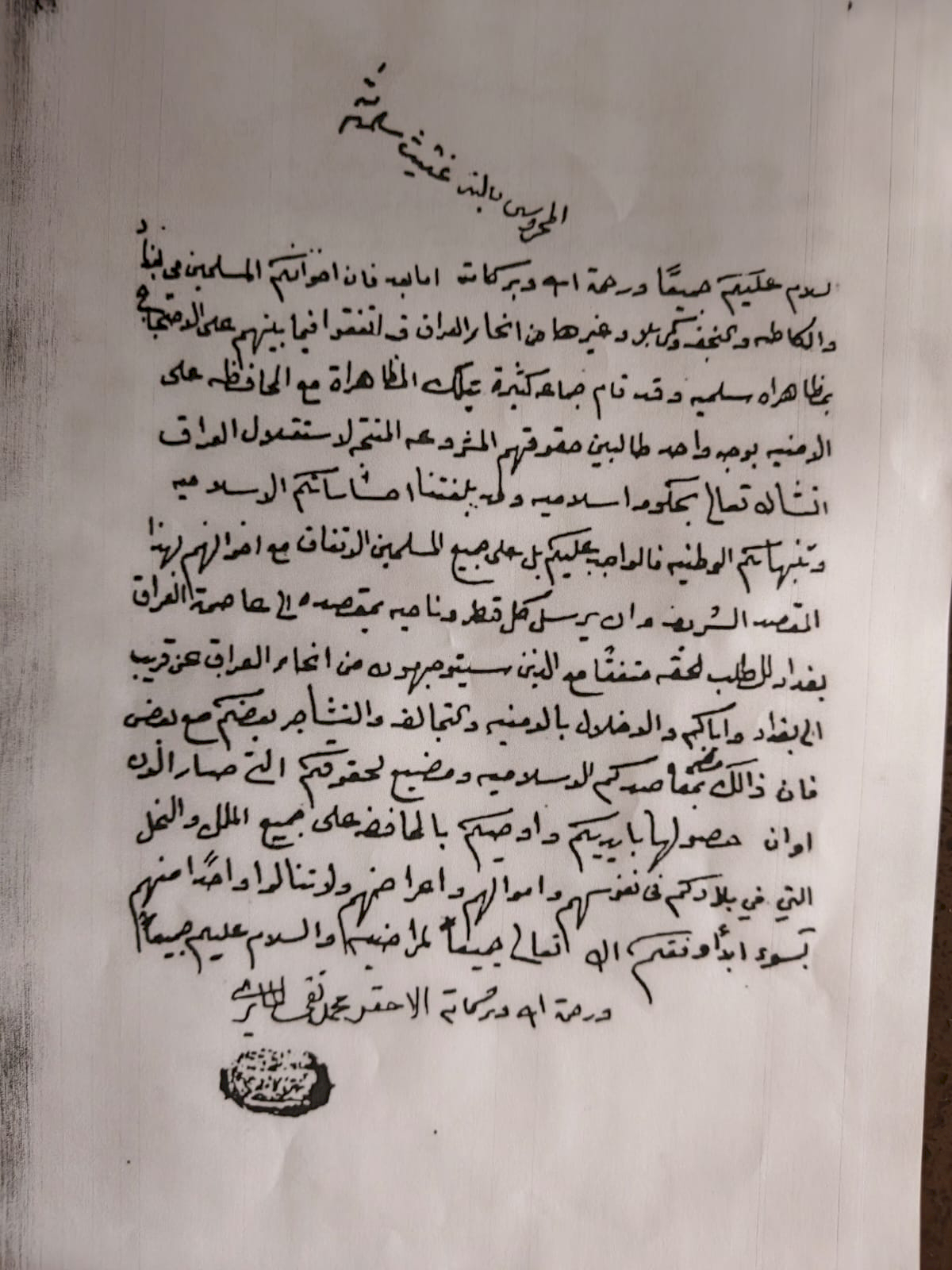 في إطار تعزيز الروابط الثقافيّة مع مختلف الشرائح الاجتماعيّة، والتنقيب عن دُرر التراث الجنوبيّ العريق، وتسليط الضوء عليه.. قامت مُنسقيّة مركز تراث الجنوب التابع لقسم شؤون المعارف الإسلاميّة والإنسانيّة في العتبة العبّاسيّة المقدّسة في محافظة الديوانيّة ممثلة بــ (أ.د. رجوان فيصل المياليّ، و أ.د. سامي ناظم المنصوريّ) بزيارةٍ إلى مضيف الشيخ (هيثم آل ناجح آل غثيث آل حرجان الظالميّ) في قضاء (الرميثة) في محافظة المثنى يوم أمس الاحد الموافق (28 أيلول 2025م)، حيث التقت بعدد من وجهاء القبيلة وأبناء المنطقة. وخلال الزيارة اطلعت المنسقية على ما تختزنه هذه الأسرة العريقة من إرث تاريخيّ مشرف، إذ كان لها السبق في المشاركة الفاعلة في أحداث ثورة العشرين عبر المواقف البطولية التي جسّدها الشيخ (غثيث الحرجان)، ودوره البارز في قيادة الحراك الشعبي ضد الاستعمار، ووقفت المنسقيّة على جانب مهم من التراث العلميّ الذي خلّفه الشيخ (ناجح الحرجان)، والمتمثل في مذكراته القيّمة حول منطقة (الرميثة) وأحداث ثورة العشرين، وهي مخطوطات بخط يده مدعومة بالوثائق والشواهد التاريخية، وقد أوضح فيها أن عشيرة (الظوالم) لها ثقلها ودورها في الحفاظ على القيم الاجتماعيّة الأصيلة والوطنية في منطقة الرميثة وغيرها من المناطق المجاورة. واختتمت المنسقيّة زيارتها بتقديم بعضٍ من نتاجات المركز العلميّة ومؤلفاته إلى الأسرة الكريمة، تعبيرًا عن الاعتزاز بتاريخها وإسهاماتها، وتعزيزًا لأواصر التواصل، خدمةً لمسيرة حفظ التراث الجنوبيّ، وتوثيق الذاكرة الوطنيّة.
