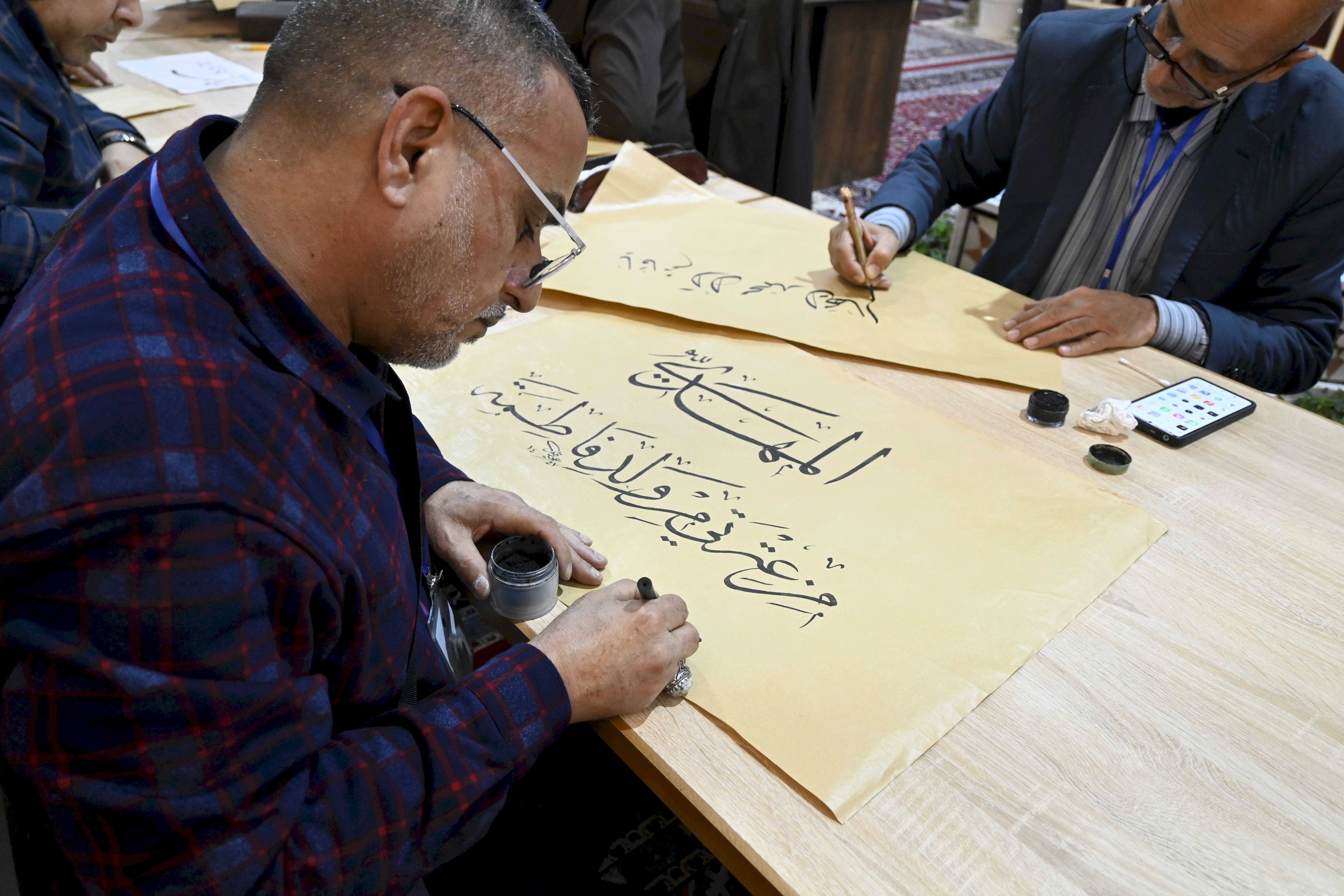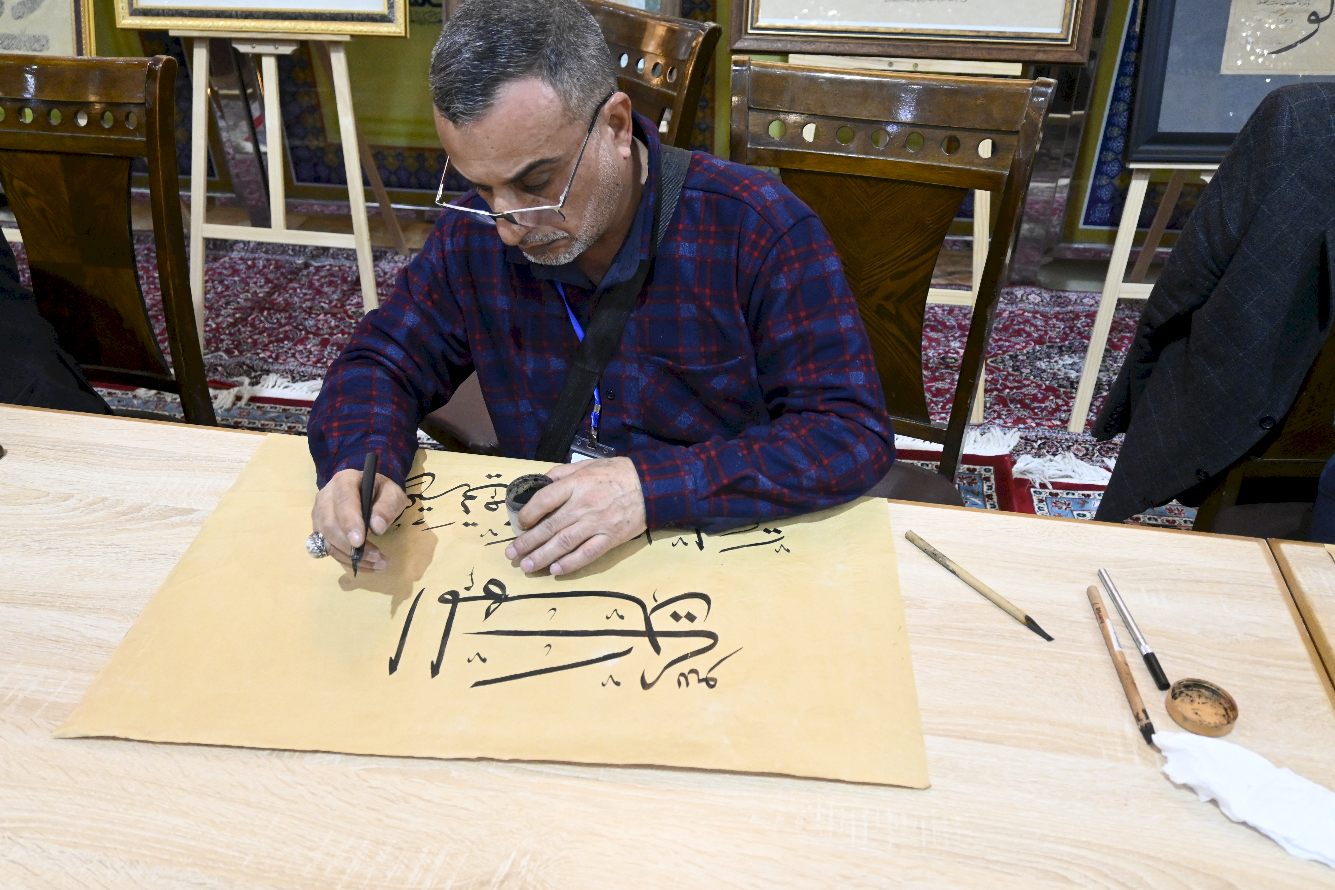 في رحاب أرض (سُرَّ من رأى)، وتحت شعار (إشراقةُ السماء في أرض سامراء)، شاركت وحدة الإعلام متمثلةً بمنتسبها الخطاط المبدع الحاج (عبد العظيم العيناويّ) في فعاليات مهرجان خاتم الأوصياء الدولي الخامس، الذي تقيمهُ الأمانة العامة للعتبة العسكرية المقدّسة، احتفاءً وإشراقًا بذكرى بزوغ فجر الأمل الموعود ولادة الإمام المهدي المنتظر (عجل الله تعالى فرجه الشريف). وجاءت مشاركة العيناويّ وسط حضورٍ دوليٍ نخبوي، ضمَّ فنانين وخطاطين من (إيران، تركيا، مصر، البحرين، والسعودية، فضلًا عن العراق)، حيث امتزج حبرُ الولاء بجماليات الحرف العربي في المعرض الفني المقام ضمن أروقة المرقد الطاهر للإمامين العسكريين (عليهما السلام). ولم تقتصر مشاركةُ مبدعنا على العرض الفني فحسب، بل تجلّت موهبته في الورشة الفنيّة الحيّة (الخط المباشر) التي أقيمت على هامش المهرجان، حيث خطّت أناملهُ لوحاتٍ ولائية ناطقةً بالحب والجمال، مُهديًا نتاج يراعه إلى خزانة العتبة العسكريّة المقدسةً، لتكون شاهدًا فنيًا في سجل الخدمة المهدويّة المباركة. يُذكر أن المهرجان الذي يستمر للمدة من ١١ إلى ١٥ من شهر شعبان المبارك ١٤٤٧هـ، يهدف إلى إحياء التراث الفني الإسلاميّ وتسليط الضوء على جماليات الخط العربيّ.