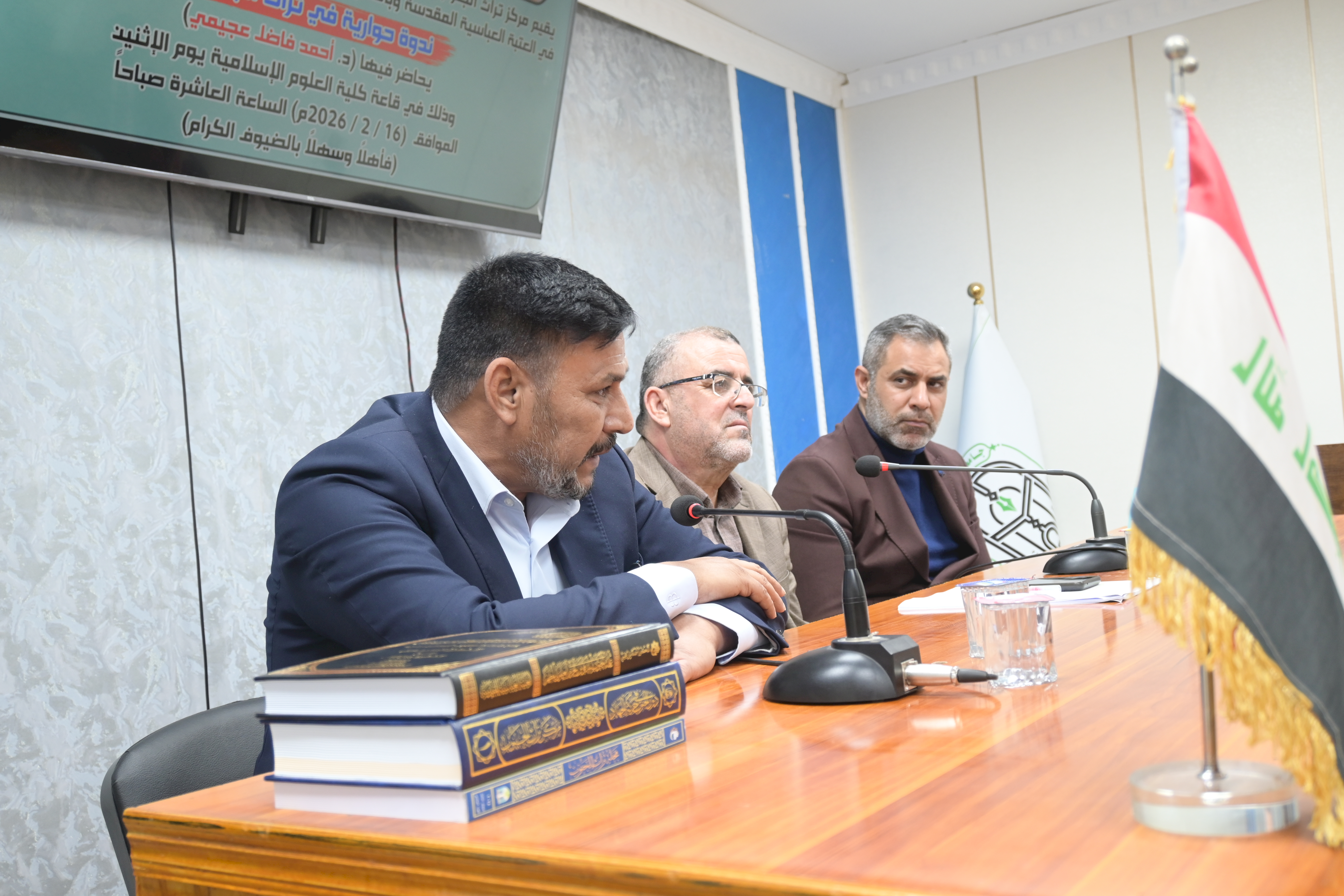 مركز تراث الجنوب يقيم ندوة حوارية بالتعاون مع كلية العلوم الإسلاميّة سعيًا منه لمدّ جسور التواصل العلميّ والمعرفيّ مع المؤسسات الأكاديمية، والتعريف بالخزين المعرفي لمحافظات الجنوب، أقام مركزُ تراث الجنوب التابع إلى قسم شؤون المعارف الإسلاميّة والإنسانيّة في العتبة العبّاسيّة المقدّسة، وبالتعاون مع كلية العلوم الإسلاميّة في جامعة ذي قار، صباح اليوم الإثنين الموافق (16 شباط 2026م)، ندوةً علميةً حوارية في تراث الجنوب، حاضر فيها (د. أحمد فاضل عجيمي) وبحضور السيد مدير المركز الأستاذ الدكتور (حسين عليّ الشرهانيّ) وذلك على قاعة الكلية، وسط حضورٍ أكاديمي وطلابي مميز. استهلّ الدكتور (أحمد فاضل عجيمي) الندوة بالتعريف بمركز تراث الجنوب واهتمامه بتحقيق تراث المحافظات الأربع (ذي قار، ميسان، المثنى، والديوانيّة)، وتوثيقه ودراسته ونشره، مسلطاً الضوء على رؤيته ورسالته الهادفة إلى تعزيز أصالة الهوية والانتماء، وإبراز دور العلماء والأسر والرجالات الجنوبيين وأثرهم في الساحة العلميّة والثقافية الإسلامية، إلى غير ذلك من أوجه التراث الأخرى. ومستعرضاً في الوقت ذاته أبرز الإصدارات التي رفد بها المركز المكتبة الإسلاميّة والمعرفيّة وما هو في طور الإنجاز. وفي سياق متصل، أفرد الدكتور العجيمي مساحةً واسعة للحديث عن مجلّة (تراث الجنوب) المحكّمة، مبيناً أنها منصة علمية حاصلة على اعتماد وزارة التعليم العالي والبحث العلميّ لأغراض الترقية العلميّة، وتخضع لإشراف هيئة تحرير متخصصة، وقد صدر منها حتى الآن (ستة أعداد) شكلت مساراً تصاعدياً في البحث العلميّ، داعياً في الوقت ذاته الباحثين وطلبة الدراسات العليا إلى استثمار هذه المنصة البحثية لنشر دراساتهم التي تُعنى بتاريخ المنطقة وتراثها ورجالاتها. وفي ختام الندوة الحوارية، اعتلى المنصةَ مديرُ مركز تراث الجنوب الأستاذ الدكتور (حسين عليّ الشرهانيّ)، مؤكدا على انفتاح المركز على الأوساط الجامعية، ومجيباً عن تساؤلات الحاضرين واستفساراتهم حول آليات العمل والتعاون، وموجهاً دعوة للباحثين والمهتمين بالشأن التراثي للتواصل مع المركز وتزويده بما تجود به أقلامهم، أو ما يملكونه من وثائق ومخطوطات؛ لغرض حفظها ودراستها بما يليق بمكانة الجنوب وتراثه. وشهدت الندوة تفاعلاً ونقاشاً علميًّا ثرياً من قبل الأساتذة والطلبة الحاضرين، الذين أبدوا اعجابهم بالمنجز النوعي للمركز، مثمنين جهود العتبة العبّاسيّة المقدّسة في إحياء هذا التراث الثرّ، منوهين إلى بعض المشاريع البحثية التي يمكن أن تكون خطوة أولى في تحقيق ذلك التعاون العلمي المنشود.
