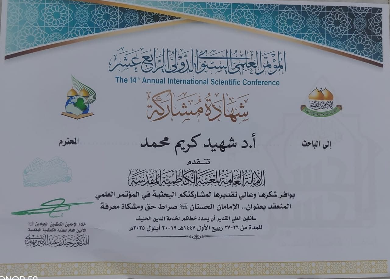 مركزُ تراثِ الجنوبِ يُسجِّلُ حضورًا أكاديميًّا مميَّزًا في مؤتمرِ الإمامينِ الحسنَيْنِ (عليهما السلام)