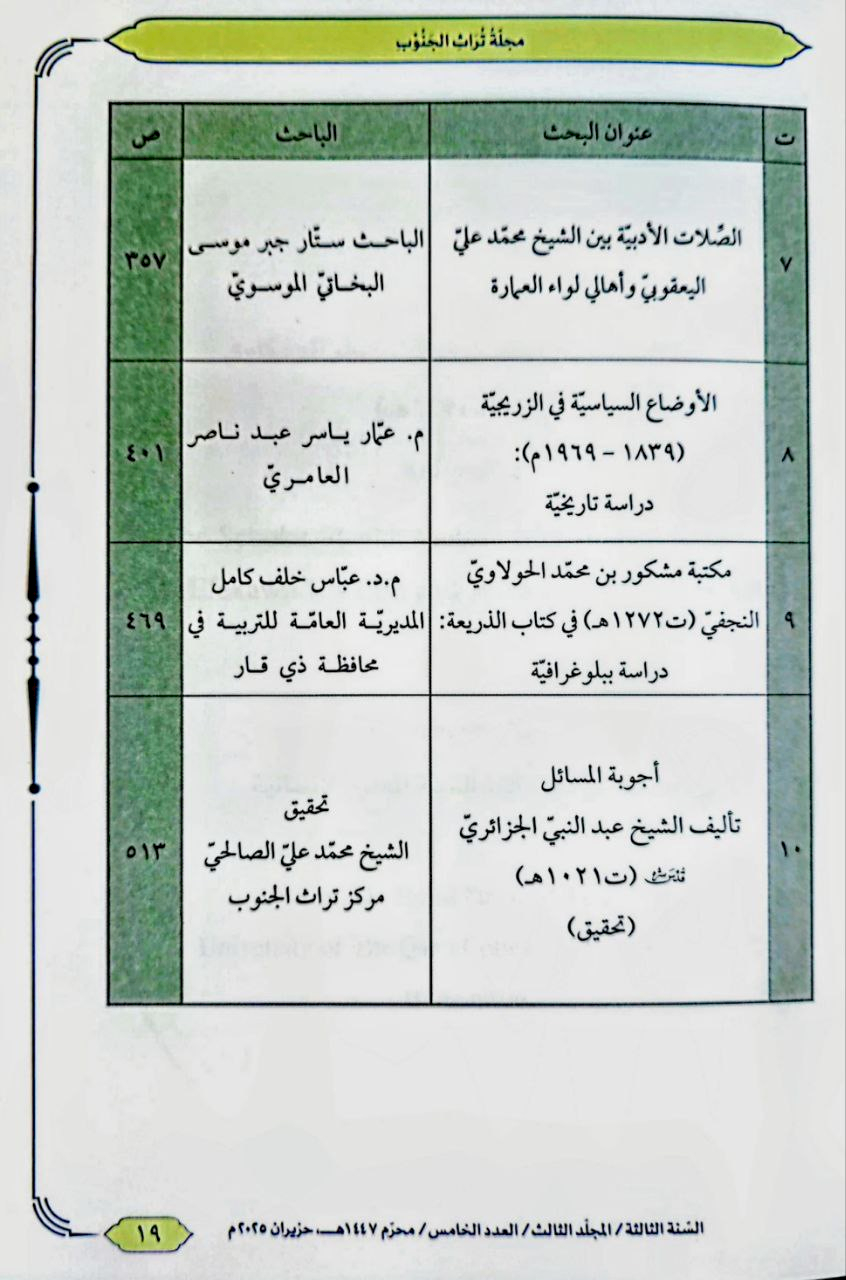 تراثُ الجنوبِ يُجدِّدُ حضورَهُ العلميَّ بإصدارِ العددِ الخامسِ من مجلَّتِهِ المحكمةِ
