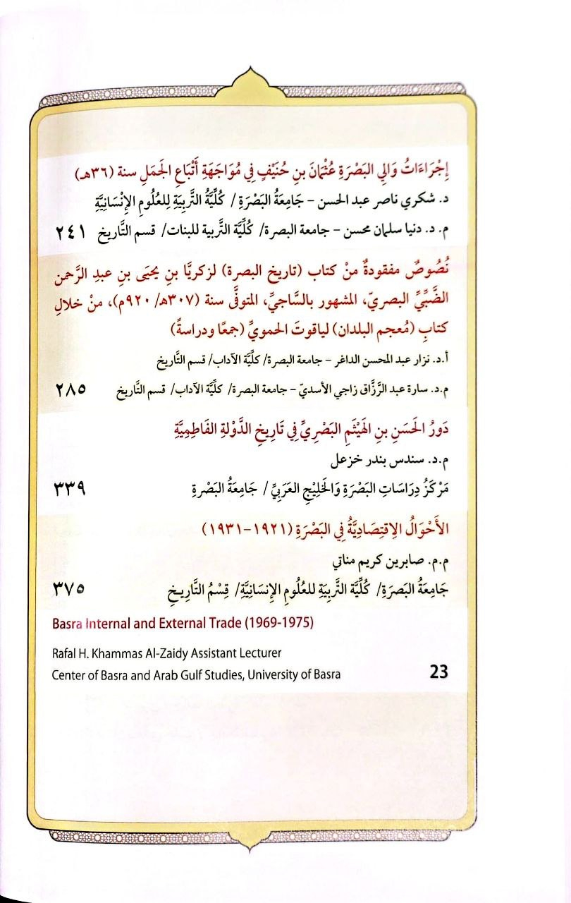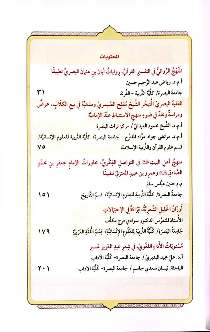 صَدَرَ حديثًا عَن مَركَزِ تُراثِ البَصرةِ، التّابِعِ إلى قِسمِ شُؤونِ المَعارِفِ الإسلاميَّةِ والإنسانيَّةِ في العَتبةِ العبّاسيَّةِ المُقدَّسةِ، العَدَدانِ (19–20) ضِمنَ المجلَّدِ السّابِعِ، السَّنَةِ السّابِعَةِ، مِن مَجلَّةِ تُراثِ البَصرةِ المُحكَّمَةِ، الّتي تُعنَى بدِراسَةِ التُّراثِ البَصريِّ في أبعادهِ التّاريخيَّةِ والعِلميَّةِ والفِكريَّةِ. وتَضَمَّنَ هذانِ العَدَدانِ مَجموعةً مِن البُحوثِ والدِّراساتِ العِلميَّةِ الرَّصينَةِ، الّتي عالَجَت مَوضوعاتٍ مُتنوِّعَةً، مِنها: المَنهَجُ الرِّوائيُّ في تَفسيرِ القُرآنِ، ورِواياتُ أبانِ بنِ نوحِ بنِ عُثمانَ البَصريِّ، ودِراسَةُ الفَقيهِ البَصريِّ مُفلِحِ الصَّيمريِّ ومَذهَبِهِ في بَيعِ الكِلابِ، إلى جانِبِ بَحثٍ في مَنهَجِ أهلِ البيتِ -عليهمُ السَّلامُ- في التَّواصُلِ الفِكريِّ. كماِ اشتَمَلَ العَدَدانِ على دِراساتٍ في أوزانِ الخَليلِ بنِ أحمَدَ الشِّعريَّةِ قِراءَةً في الاحتمالاتِ، ومُستوى الأَداءِ اللُّغويِّ في شِعرِ عبدِ العزيزِ عسيرٍ، فضلًا عَن بَحوثٍ تاريخيَّةٍ تناولَت إجراءاتِ واليِ البَصرةِ عُثمانَ بنِ حُنيفٍ في مُواجهةِ أتباعِ الجَمَلِ سَنَةَ 36هـ، ونُصوصًا مَفقودَةً مِن كِتابِ (تاريخِ البَصرةِ) لزكريّا بنِ عبدِ الرَّحمنِ الضُّبيِّ البَصريِّ. واختتِمَ العَدَدانِ بدِراساتٍ عِلميَّةٍ في دَورِ الحَسَنِ بنِ الهيثَمِ البَصريِّ في تاريخِ الدَّولةِ الفاطميَّةِ، والأحوالِ الاقتصاديَّةِ في البَصرةِ للفترةِ 1921–1931، فيما جَدَّدَت إدارةُ مَركَزِ تُراثِ البَصرةِ دَعوَتَها المَفتوحَةَ إلى الباحِثينَ والأكاديميِّينَ داخِلَ العِراقِ وخارِجَهُ للمُشارَكَةِ في الأَعدادِ القادِمَةِ، بما يُسهِمُ في تَعزيزِ الحَراكِ البَحثيِّ وإبرازِ مَكانَةِ التُّراثِ البَصريِّ في الدِّراسَاتِ الأكاديميَّةِ.