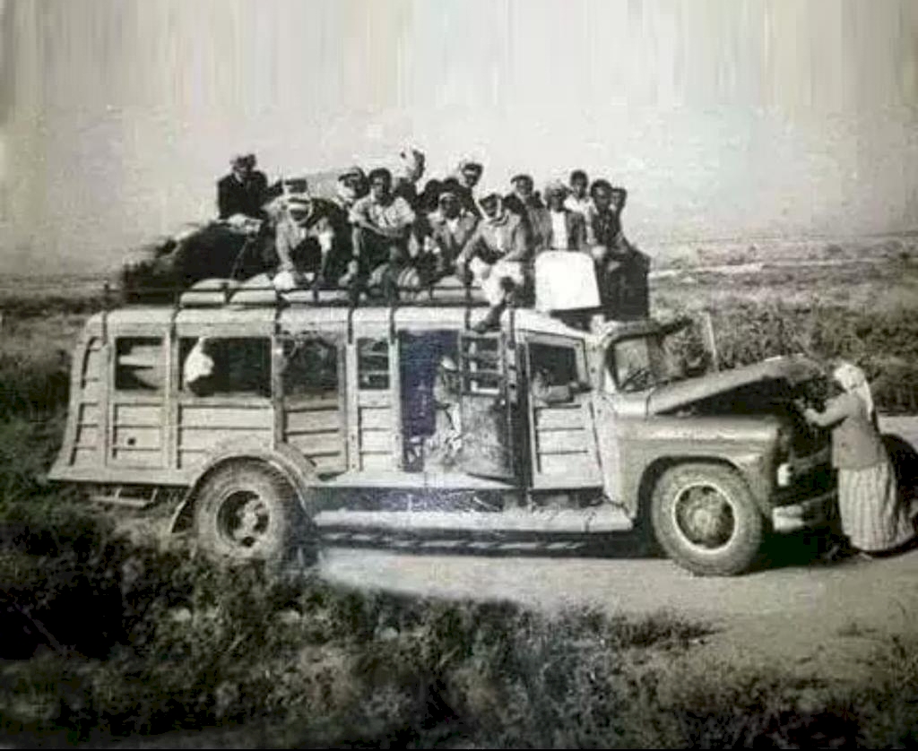 يوم دخل الباص الخشبي الحلة، عام 1927 إلتف الجميع حوله، ينظرون إلى هذا الوحش بدهشة واستغراب، وبعضهم ارتمى تحته ليرى كيف يسير دون قوائم، وقد ألفوا العربات التي تجرها الحمير والبغال والجياد، أو (الروان) الخشبي الذي تجره الحيوانات، أو (الكاري) الذي يسير على القضبان وتسحبه الحيوانات، وما أن هدر محركه حتى تفرقوا مذعورين، لايجرأون على لمسه أو الإقتراب منه. كان باص الخشب وسيلة خلفّها الإنكليز لنقل الأحمال، إلا أن الحاجة استدعت الناس إلى نقل (العبريه) فيه، أي العابر أو المار، بينما أستغل سطحه والدكة الخلفية لنقل المحاصيل الزراعية، و(المفلسين) الذين يتعلقون بمؤخرته. يصنع الهيكل الخارجي للباص من أخشاب الجاوي والصاج، وتغلف جوانبه الخارجية من الخشب المطلي أو (الفورميكا)، وقد اشتهرت الحلة بـ(اسطوات) مشهورين بهذه الصناعة دون باقي المحافظات العراقية، لأن دخول الباصات كان مبكرا إلى لحلة، ويتكون الباص من ثلاثة أجزاء، الأول هو قمرة القيادة، إضافة إلى مقعدين أماميين، أما الجزء الأوسط فيضم ستة مقاعد متقابلة، والجزء الأخير يتكون أيضا من مقاعد متقابلة وباب خشبي جانبي لنزول الركاب، وقد يحبذ الأطفال الجلوس على هذه الدكة، وهم يهتفون (هذا سايقنا الورد هسة يوصلنا ويرد)، كما يحتوي الباص على عشر نوافذ بزجاج متحرك ( سلايد ) على الجانبين . يقول السائق حميد ناجي : إن سعة الباص ثمانية عشر راكباً، ولكن أصحابها عادة يحملونها ضعف العدد فيضطرون إلى الوقوف، وكان القانون يفرض ترميم الباص المستهلك وليس تبديله، مما مكّن (الدريول)، كلمة مشتقة من (Driver) السائق، من اكتساب خبرة في إصلاحه، وأعمال الصيانة لا تقتصر على الميكانيكي ، وإنما يتفنن النجار بزخرفة وطلاء ألواح الخشب التي تؤلف هيكله، وكان الناس يفضلون الإرتقاء على سطحه، عوضا عن داخله، ويتميز هيكله بالمتانة حتى تتحاشاه باقي المركبات، أما محركه فغالباً ما يكون ذا ست سرعات. أما جابر حسوني وهو من سائقي الباص القدماء فيقول : إن دخول الباص الخشبي إلى الحلة كان أواخر العشرينيات، وكانت مصنّعة من قبل شركة (شيفروليت الأمريكية)، وهي بمواصفات متشابهة باستثناء بعض الإختلافات في قوة محركاتها، حسب الطراز (الموديل)، وكان الباص الخشبي يجوب مناطق الحلة وأقضيتها، قبل أن تعبد شوارعها، مما يدعو السائقين إلى شد عجلات مركباتهم بسلاسل حديدية لزيادة احتكاكها بالأرض خوف الإنزلاق أو الغوص في الطين، وكانت أجرة الركوب زهيدة (4عانات، 16 فلسا)، وبدأ الباص بالإنقراض لإنعدام استيراد قطع الغيار، فلجأ أصحابها إلى الترقيع، أو استبدالها بأجزاء السيارات المتهالكة. يقول مفوض المرور سامي لطيف : كانت الباصات الخشبية، منتصف القرن الماضي، تعرقل إنسيابية المرور، لبطئها وعطلاتها المفاجئة، كما إنها تفتقر لشروط السلامة والأمان، لتعطل فراملها أو لتسلق الركاب على سطحها، ولايملك أغلب أصحابها إجازة سوق عمومي، وعدم تسجيل اللوحات في شرطة المرور. ويشير وحودي راضي الذي هجر هذه المهنة منذ عقود : لقد عملت في هذه المهنة منذ خمسينيات القرن الماضي، وكانت مهنة لها أصولها ورجالها وكان سائقو الباصات معروفين بالشهامة، وكنا نقّل الفقير بدون أجرة، وكان عدد الباصات في أوائل الخمسينيات مئتي باص، ولكنّ هذا العدد بدأ بالتناقص، وكان كراج الحلة موقفا للباصات، كما كان السواق يزينون بدن الباصات بصور وكتابات لا تخلو من حكمة وطرفة، من قبيل (سيري وعين الله ترعاك) و(لاتسرع يابابا نحن بإنتظارك)، ويضعون تعاويذ وأدعية لتحرسها والراكبين. ويستخدم الباص الخشبي كذلك لنقل المحاصيل الزراعية من القرى إلى الحلة، أو لنقل المسافرين من الحلة إلى المدن المقدسة، أونقل الحجاج لأداء مناسك الحج و العُمرة، و كانت أبدان الباصات تُركَّب على هياكل اللوريات المستوردة، وتصنّع أجزاؤه الباقية محلياً، والمقاعد مغلفة بالإسفنج والجلد، وقد دخل مصطلح (دگ النجف) للدلالة على باص الخشب، وقد بدأ تحوير هيكلها إلى الحديد بدلا من الخشب، أو تحو